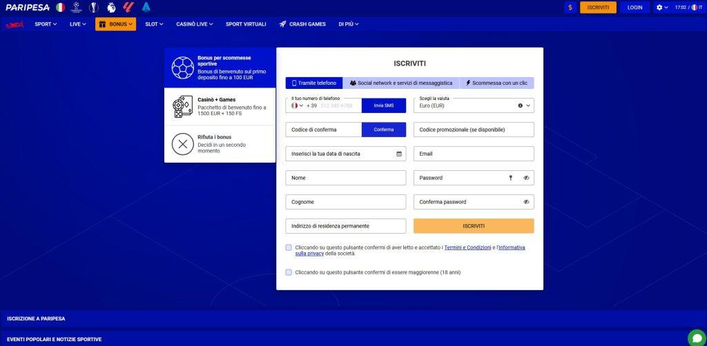 Consigliamo di registrarti su Paripesa subito!